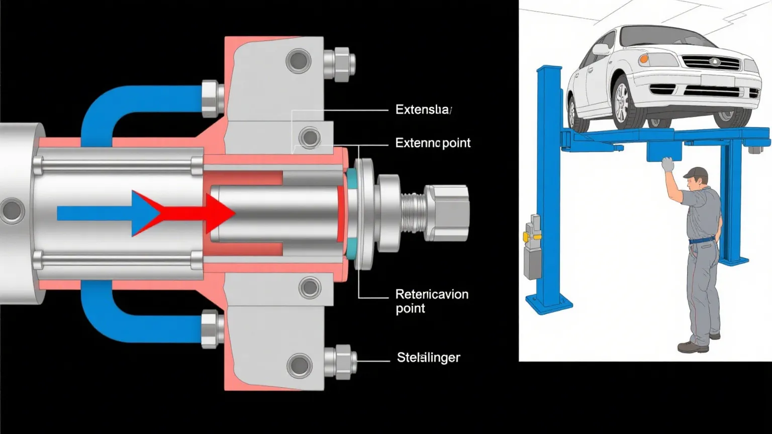 Ansin tá an sorcóir ardaitheoir hiodrálach ag gníomhú go dúbailte. Úsáideann an ceann seo brú chun brú agus tarraingt, ionas go bhfaighidh tú smacht beacht ar ardú agus ar ísliú. Is é an bealach atá ann d’ardáin oibre ón aer a chaithfidh a bheith in airde seasta, ardaitheoirí gluaisteán i ngaráistí a chaithfidh feithiclí a ísliú go réidh, nó ardaitheoirí tionsclaíocha ag gluaiseacht páirteanna idir urláir. Gan a bheith ag brath ar dhomhantarraingt anseo - tá gach gluaiseacht faoi thiomáint, rud a chiallaíonn torthaí níos rianúla agus níos comhsheasmhaí.
