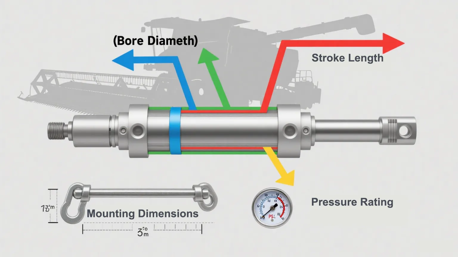 Tá toisí gléasta mór eile. Ní bhaineann sé seo le líneáil boltaí amháin - baineann sé leis an bhfad a tharraingítear siar ó bhioráin go bioráin agus na cineálacha gléasanna, cosúil le clevis nó súil phionna. Mura n-oireann siad seo, d’fhéadfadh do shorcóir hiodrálach buainteoir suí ar uillinn aisteach, rud a fhágann go gcaithfí níos mó rónta nó fiú an tslat a lúbadh le himeacht ama. Grab beart téip, seiceáil an áit a bhfuil na gléasanna ceangailte, agus cinntigh go bhfuil toisí an tsorcóra nua ag teacht leis an gceann bunaidh. Seo mar a choinníonn tú rudaí ag rith go réidh, gan aon strus breise ar an meaisín.