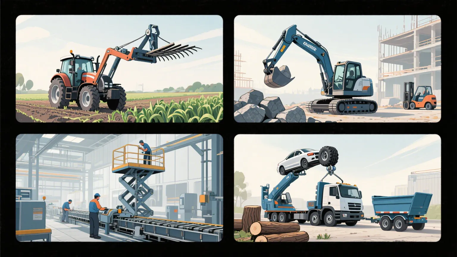 I dtógáil agus i láimhseáil ábhar, tá sé chomh áisiúil. Braitheann builíní sciorrtha ar an sorcóir ardaitheoir hiodrálach tromshaothair seo chun buicéid, grapples, agus ugers a rith - jabanna diana a dteastaíonn cumhacht comhsheasmhach uathu. Úsáideann forklifts beaga é freisin, chun an crann a ardú agus a chlaonadh, agus mar sin téann na pailléid go díreach nuair is gá dóibh. Ardáin oibre ón aer? Braitheann na meicníochtaí scissor in ardaitheoirí níos lú ar a chruinneas chun ardú agus ísliú go sábháilte. Fanann fiú criosanna iompair daingean agus éifeachtach, a bhuíochas leis an sorcóir ardaitheoir hiodrálach seo a láimhseálann dualgais teannas gan bac.