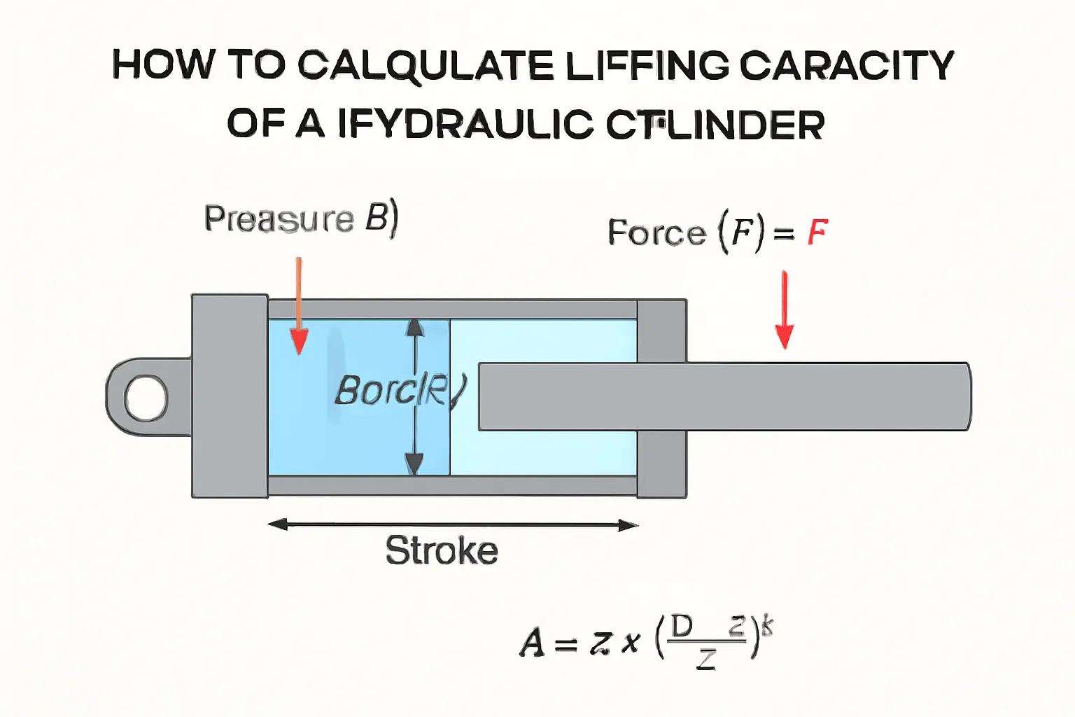 Tosaigh leis an bhfoirmle bhunúsach - ní gá í a ró-chasta. Tagann an fórsa ardaithe síos go dtí amanna brú limistéar éifeachtach an tsorcóra. I méadrach, sin é Fórsa (i Newtons) = Brú (Pascals) × Achar (méadar cearnach). Maidir leis an impiriúil, is Fórsa (punt) é = Brú (PSI) × Achar (orlach cearnach). Chun an t-achar a fháil, ní gá ach úsáid a bhaint as π huaire (leath an trastomhas tollaidh) cearnach. Ligean le rá go bhfuil sorcóir ardaitheoir hiodrálach tromshaothair agat le tolladh 100mm (is é sin thart ar 3.94 orlach) ag rith ag barra 200 (thart ar 2,900 PSI). Bheadh an limistéar 3.14 uair (0.05 méadar cearnach), is é sin 0.00785 méadar cearnach. Méadaigh é sin faoi 200 × 10⁵ Pascals, agus tá tú ag féachaint ar thart ar 15,700 Newton fórsa - go leor chun ualaí diana a láimhseáil.