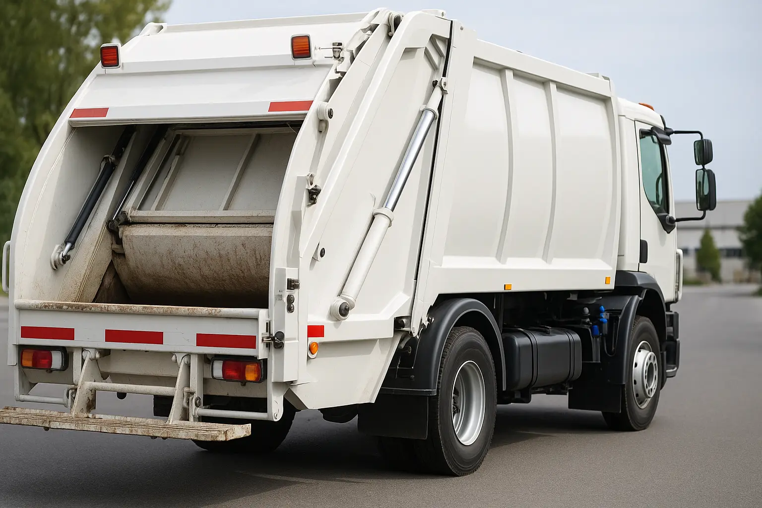 Comhbhrú agus tiomáint: Úsáideann an trucail chomhbhrú ar chúl gléas brú hiodrálach chun an truflais a dhlúthú chun an dlús líonadh a mhéadú.