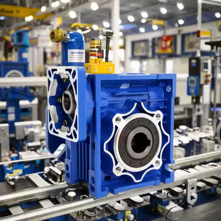 Glacann an laghdaitheoir fearas worm sraith RV blaosc cóimhiotal alúmanaim, atá éadrom i meáchan agus a bhfuil diomailt teasa tapa aige. Tá sé oiriúnach le haghaidh suiteáil spás-srianta nó trealamh soghluaiste. Tá dromchla an bhosca anodized agus tá cumas láidir frith-chreimeadh aige. Tá sé oiriúnach go háirithe do thimpeallachtaí nó d'ionaid oibre tais agus deannaigh a dteastaíonn oibriú cobhsaí fadtéarmach uathu. Tá an worm déanta as cruach cóimhiotail ardchaighdeáin, próiseáilte ag múchadh carburizing agus meilt cruinneas, agus a mheaitseáil le roth worm cré-umha stáin ard-neart. Tá cruinneas meshing ard aige agus oibriú ciúin agus cobhsaí. Féadann sé aschur cobhsaí a choimeád fiú faoi choinníollacha ualaigh leanúnach agus saol iomlán an trealaimh a leathnú.